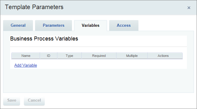 Sama seperti dengan parameternya, klik Add Variable untuk membuat variabel untuk proses bisnis Anda.