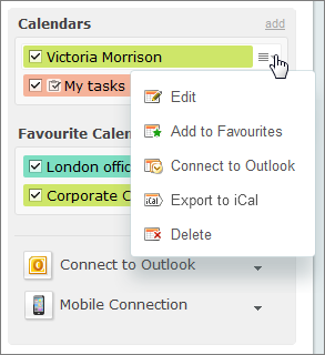 Kontrol eksport kalender terdapat di bawah kalender favorit