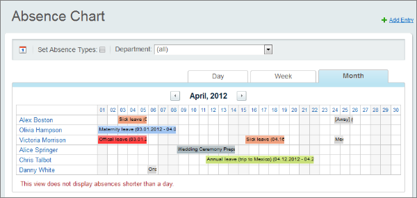 Bagan absen dapat menampilkan data dalam tiga skala waktu: harian, mingguan atau bulanan.