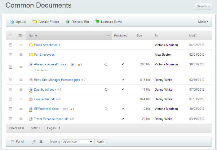 Company Drive adalah bagian terpisah untuk penyimpanan dan kolaborasi dokumen dan file umum (seperti kebijakan, arahan, dan formulir standar untuk pencetakan) yang tersedia secara universal. Pengguna memiliki akses ke perpustakaan ini sesuai setting yang bisa dikonfigurasi sesuai kebutuhan. Hal ini juga memungkinkan untuk memberikan pengaturan akses khusus ke file individual, yaitu setiap dokumen dapat memiliki pengaturan akses uniknya, sehingga beberapa pengguna hanya dapat membaca, yang lain dapat mengedit, dll.