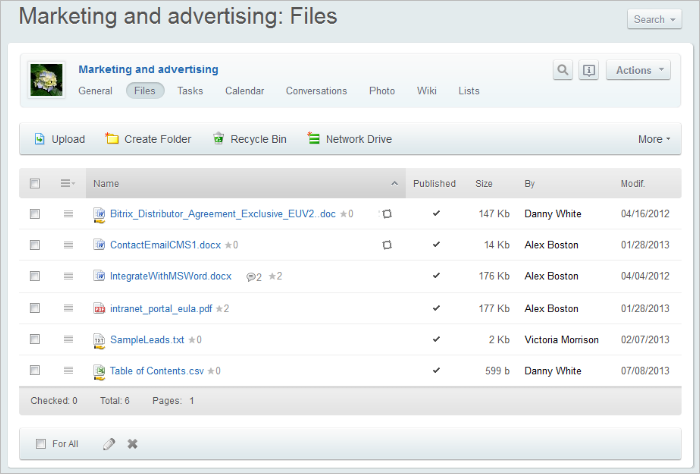 Bagian Dokumen memungkinkan pembagian file, teks, dokumen, spreadsheet dll dan memungkinkan kerja kelompok.