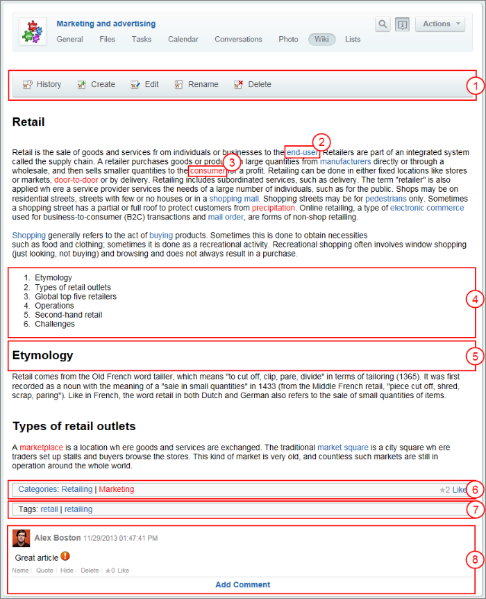 - Daftar isi: blok ini ditambahkan secara otomatis jika halaman wiki memiliki judul.